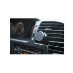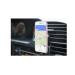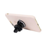 Soporte magnético para celular. El adaptador se puede incorporar a la rejilla del aire acondicionado del auto y se adapta a cualquier tamaño. El agarre del celular es por medio de imán, sólo se debe colocar una placa de metal en el celular. En la placa de metal es donde se aplica el logo.