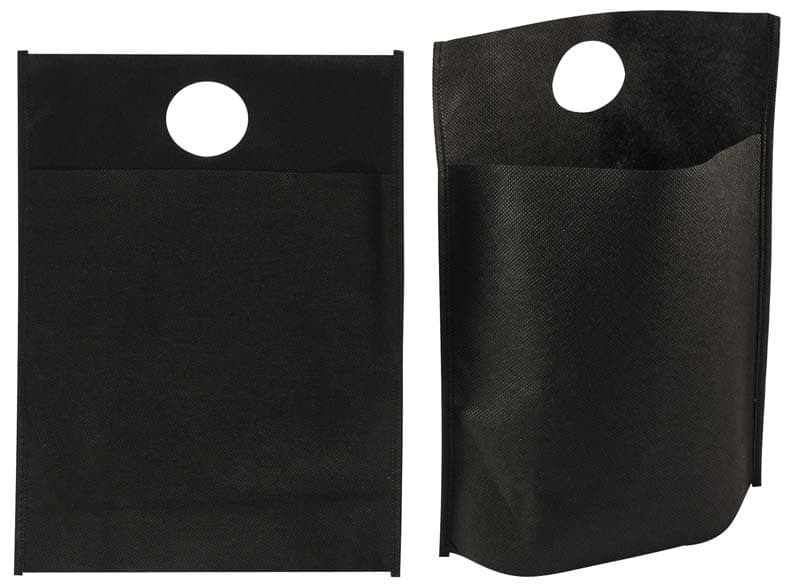 Basurero para vehículo, en tela no tejida (TNT) de 80g/m2, con fuelle interior de 10cm de fondo. Ideal para usar como basurero o papelero, en la palanca de cambio o asiento trasero.