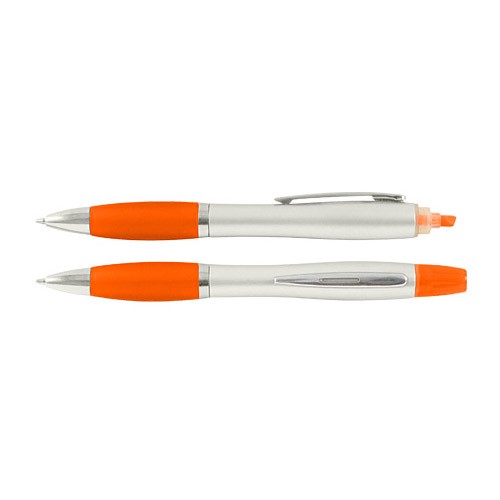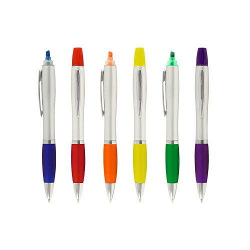 Bolígrafo Promocional “Wind Satin” con Destacador. Escritura Azul.