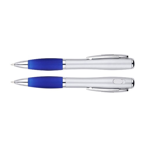 Bolígrafo plástico con linterna LED. Escritura Azul.