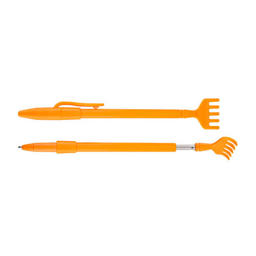 Bolígrafo plástico de color con tapa, con Manito Rascadora expansible (tipo antena). Escritura azul.