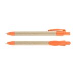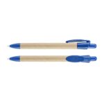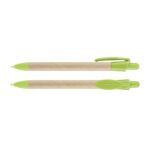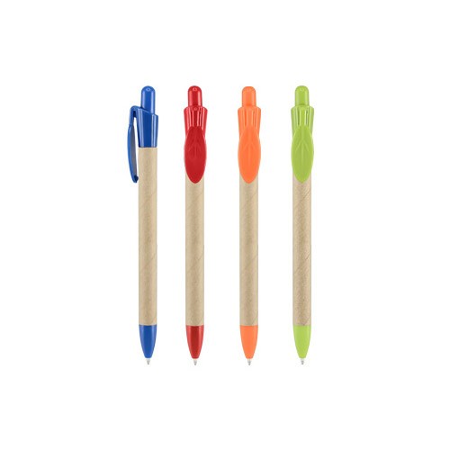 Bolígrafo ecológico “Hoja” con cuerpo de cartón reciclado y terminales de plástico PET biodegradable. Escritura azul.