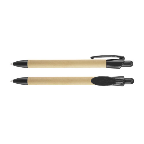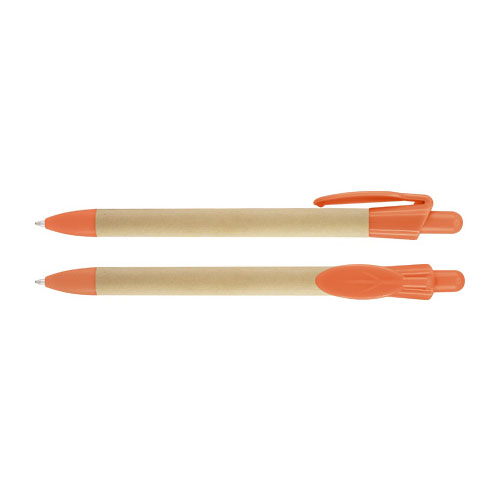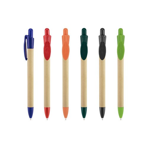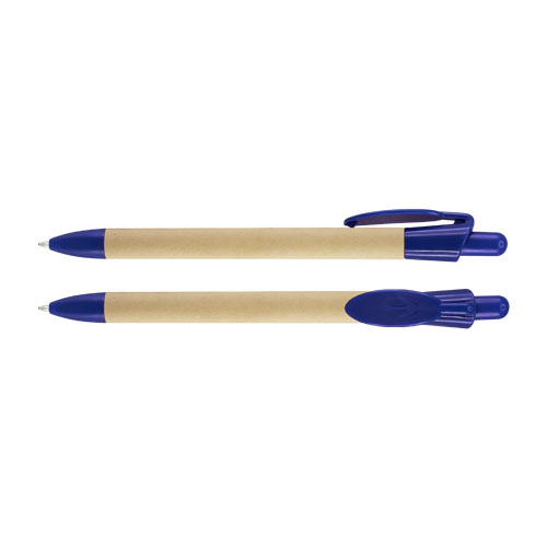 Bolígrafo Ecológico “Leave” con cuerpo de cartón reciclado y clip plástico PET biodegradable con forma de hoja. Escritura azul.
