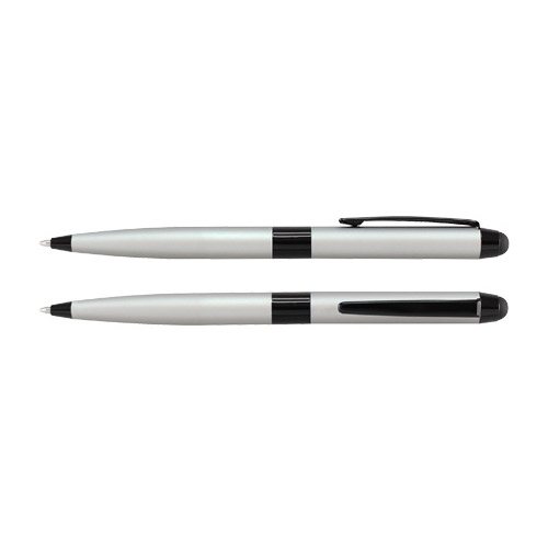 Bolígrafo Metálico modelo “Bauhaus”, cuerpo satinado color mate, con goma posterior negra “Touch-Screen” para pantalla táctil. Escritura negra.