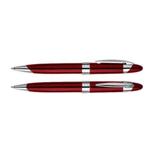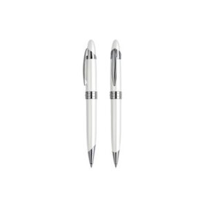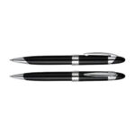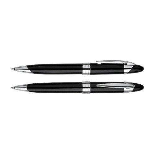 Bolígrafo metálico modelo “Black Pearl”, con terminales cromados plata. Escritura azul.