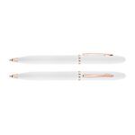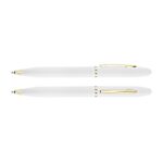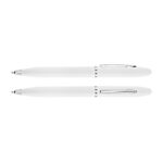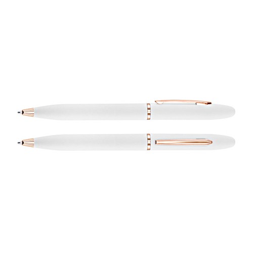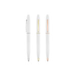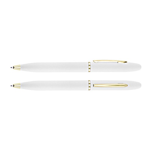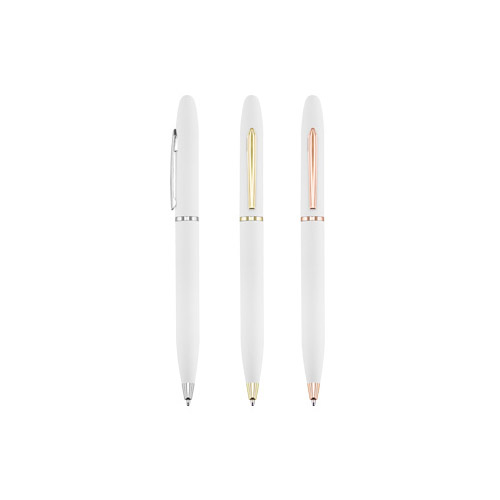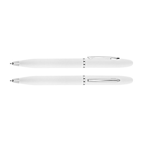 Fino bolígrafo Metálico blanco modelo “Trooper”, con terminales metálicos. Diseño simple y moderno. Escritura azul.