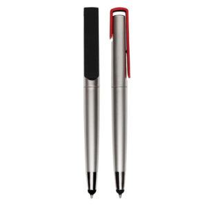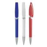 Plástico. Apertura retráctil con pulsador. Clip plástico, color plata en puntera y cuerpo. Tinta azul.