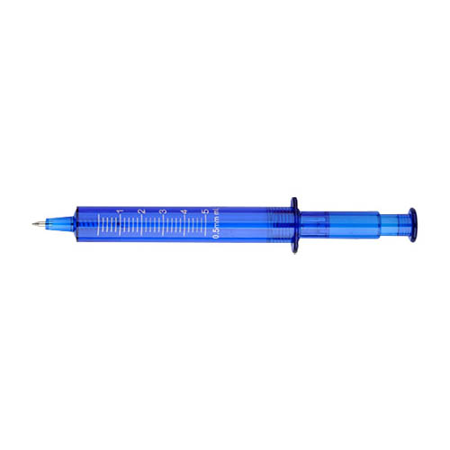 Bolígrafo plástico promocional “Jeringa”. Escritura Azul.