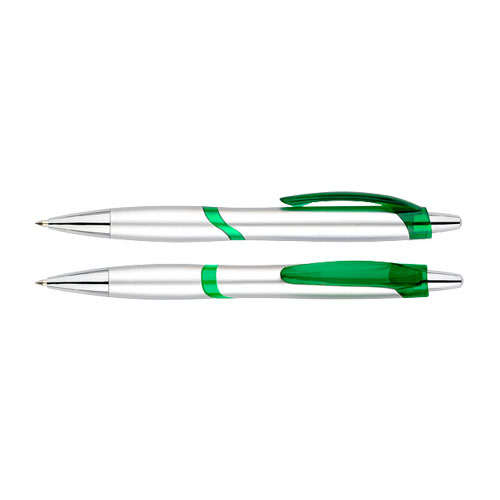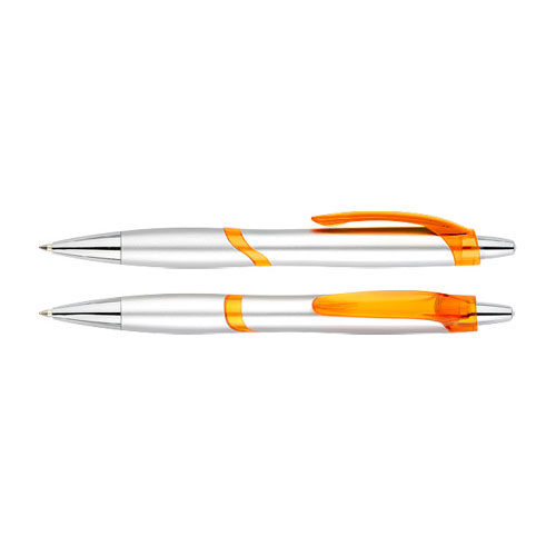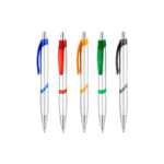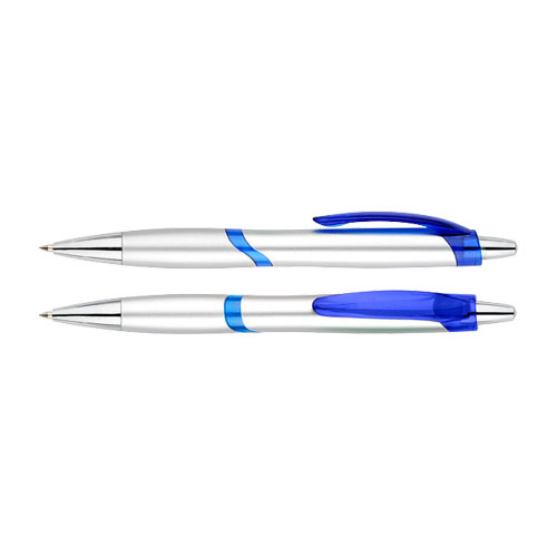 Bolígrafo plástico plateado “Júpiter”. Escritura Azul.