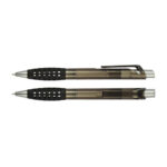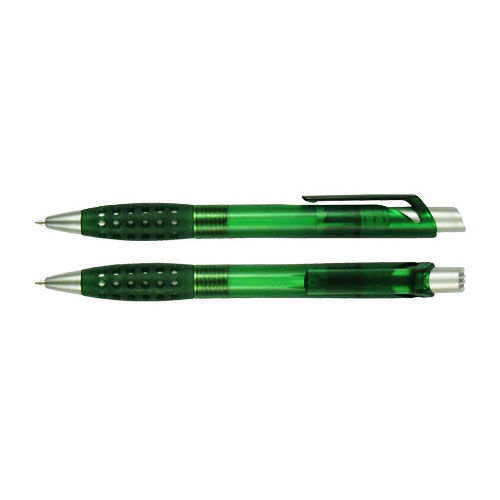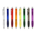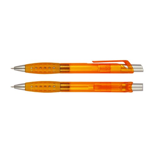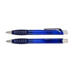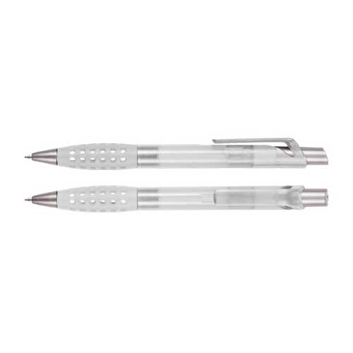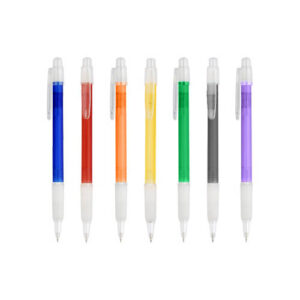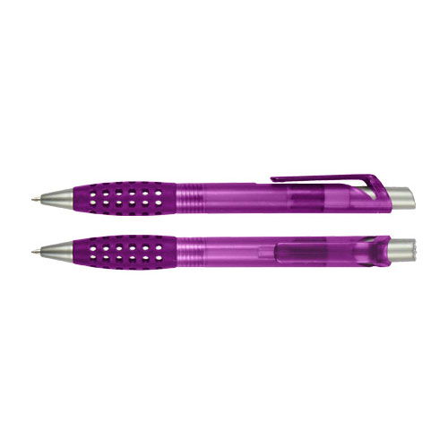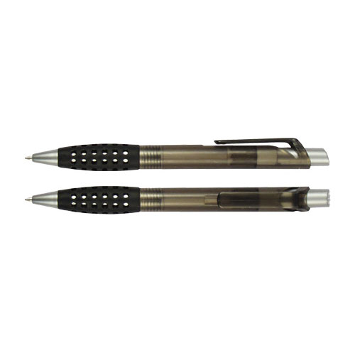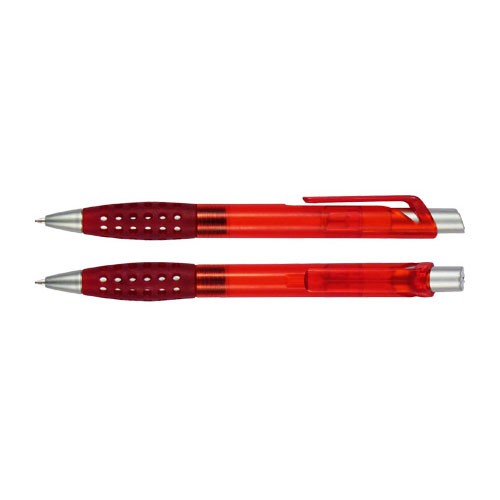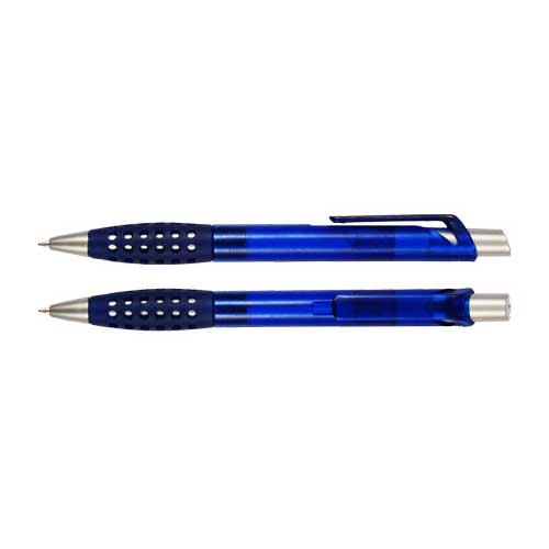 Bolígrafo plástico modelo “Punch” con grip de goma con orificios. Escritura azul.