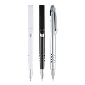 Ø 0,5 x 13,5 cm. Bolígrafo plástico giratorio con detalles metálicos. Clip metálico. Puntero para pantallas táctiles. Tinta negra.