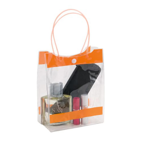Bolsa de PVC clear con asas. Ideal para packs promocionales de punto de venta o como necessaire/cosmetiquero.