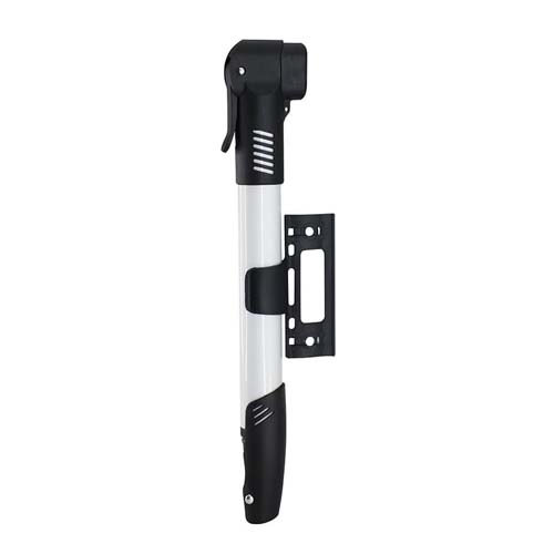 Bombín portátil con soporte para marco de bicicleta.