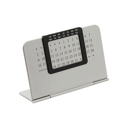 Calendario Eterno Plástico de escritorio, para todos los días, meses y años. Con ventana semanal móvil en español e inglés. Presentación en cajita plateada de regalo.