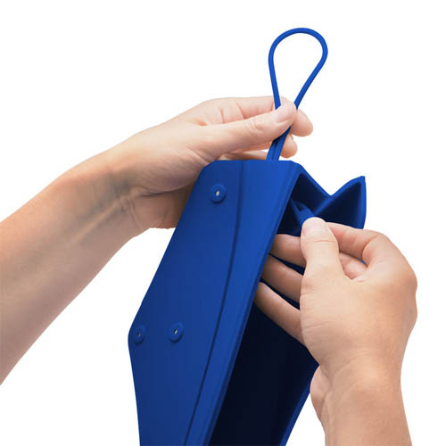 Cartera de mano en forma de sobre con solapa imantada y correa desmontable. Silicona. 21,5 x 12,2 x 5 cm.