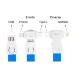 Cable cargador dual Micro USB y iPhone en el mismo terminal, Android por el anverso, iPhone por el reverso.