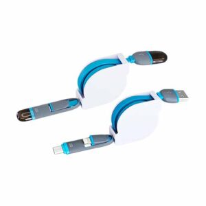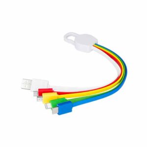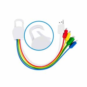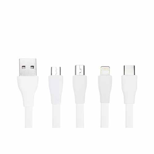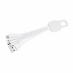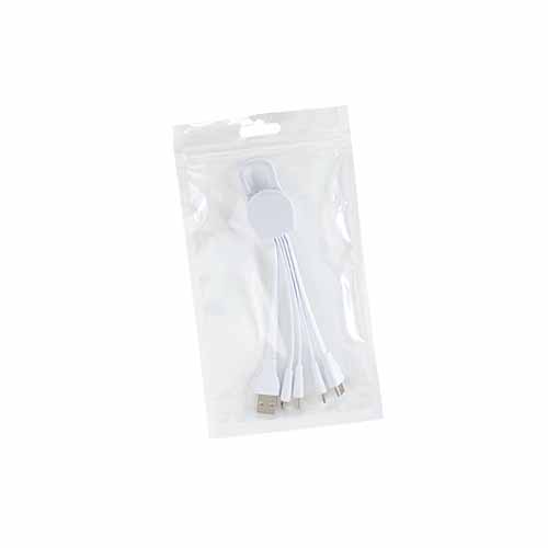 Connect Multicargador 5-en-1 con cables plásticos TPE engomado blanco y base plástica ABS blanco con mosquetón. Multi-cables con terminales de carga USB / Micro USB / Mini USB / iPhone / Type C. Compatible con dispositivos Android, Apple y Type C. Presentación en elegante bolsa OPP con orificio para colgador de ganchera. Producto con aprobación CE, ROHS, FC.