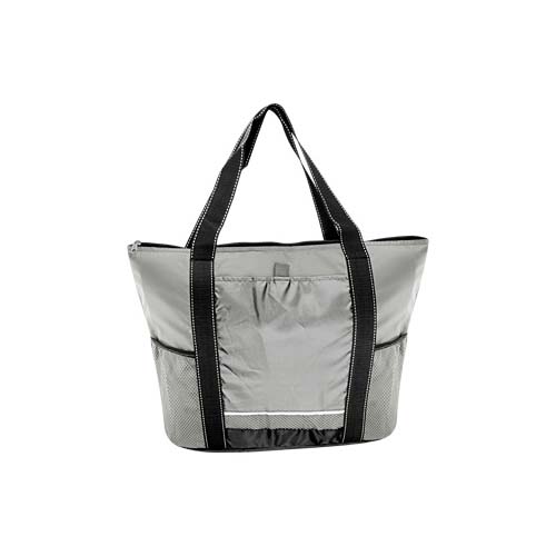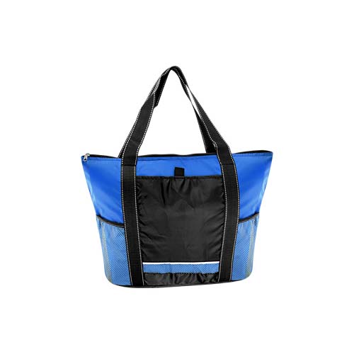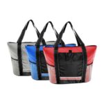 Cooler gigante modelo “Artic”. Tela exterior Polyester 210D/PU. Tela interior plateada aislante 15C PEVA + relleno 6mm esponja PE. Cierre cremallera superior. Incluye bolsillo delantero para bordar + bolsillos laterales tela malla.