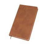 Cuaderno tamaño A5, con cubierta de cartón piedra forrada en PU simil cuero de 3mm de espesor. Interior 80 hojas lineadas amarillas de 80gsm. Incluye banda separador de hojas al tono. Presentación individual en bolsa de polipropileno.
