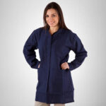 Corte princesa, cuello solapa 3 bolsillos parche, 4 botones escondidos (Con tapeta) y puño con botón.