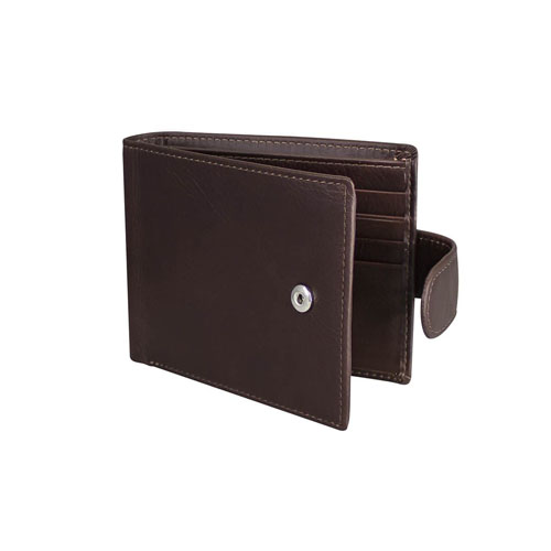 Deluxe Billetera de cuero natural Marrón con broche. Finas terminaciones. 17 compartimentos interiores (3 secciones). Alta resistencia al uso. Presentación en bolsa frozen y caja de cartón forrado negro texturado.