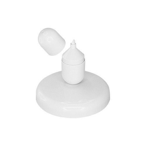 Destacador amarillo “Cápsula” blanca, sobre base plástica blanca. Cuenta con sistema imantado que sostiene la cápsula de pie sobre la base, estabilizándola como “mono porfiado”. Amplia área de impresión tanto en la cápsula como en la base. Presentación en caja de regalo blanca. Importante: presionar la punta sobre papel por 3 segundos para que la tinta amarilla baje.