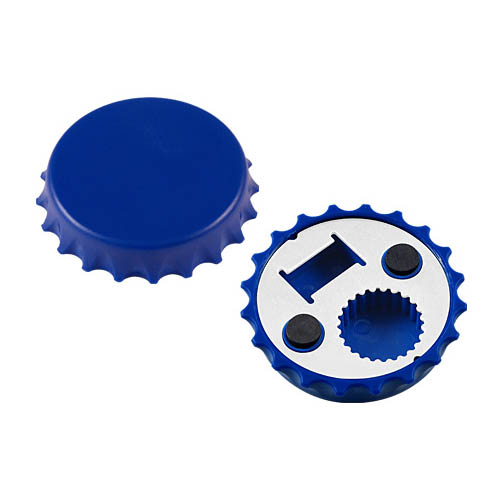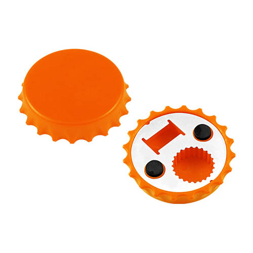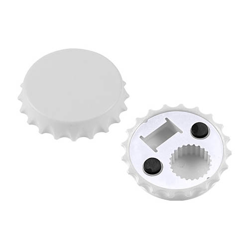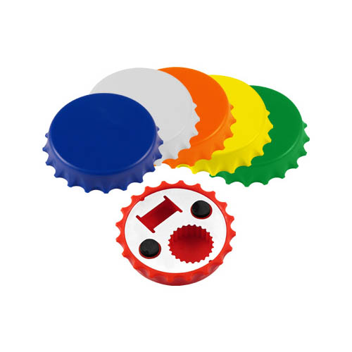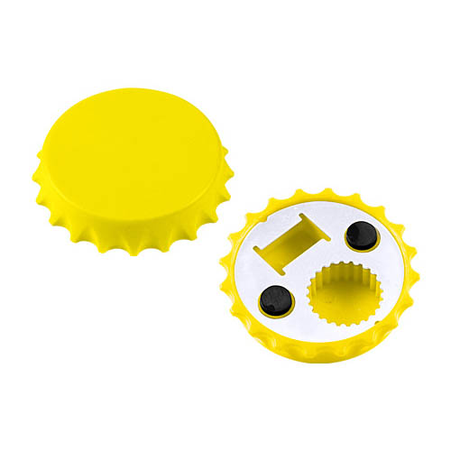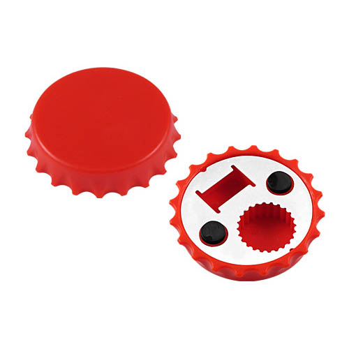 Destapador y Abridor de tapas twist-off, con forma de tapa de botella. Imantado para refigerador.