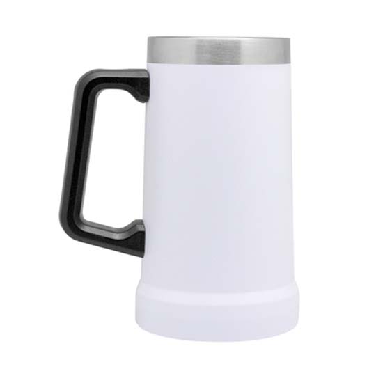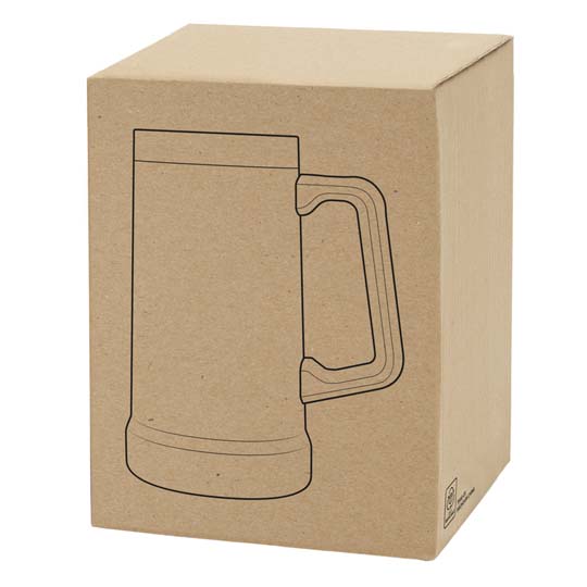 Ø 10 x 17cm. Capacidad 700 ml. Acero inoxidable. Jarro cervecero doble pared, sellado al vacío. Interior en acero 304 y exterior en acero 201. Mango Plástico. Pintura Powder coat (pintura más duradera y resistente a la corrosión y el paso del tiempo). Presentación en caja de regalo Kraft.