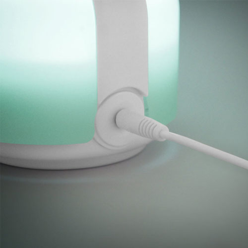 Plástico. Ø 11 x 19 cm. Funciona con conexión USB o 4 pilas AA (no incluidas).