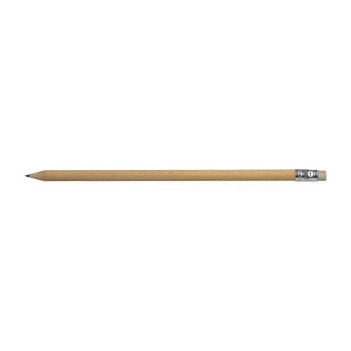 Lápiz grafito largo de madera barnizada. Cuerpo 100% cilíndrico, ideal para imprimir logos sin problemas. Incluye goma de borrar y viene con punta lista.