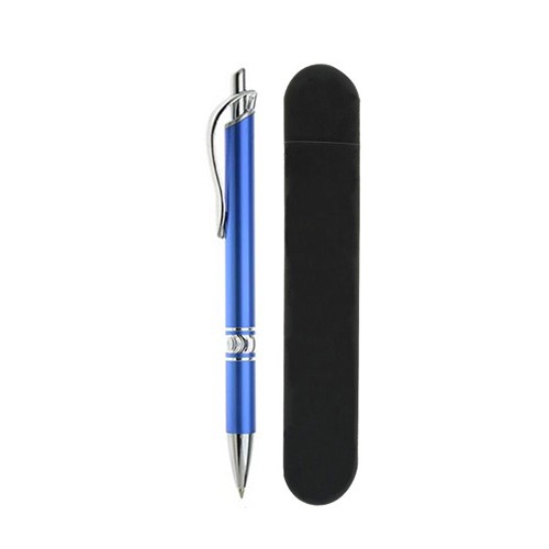 Lápiz metálico, enlacado, pulsador retráctil repuesto intercambiable. Tinta azul