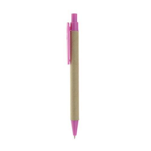 Lápiz ecológico de cartón reciclado y aplicación de color en punta y clip de plástico.