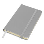 Cartón. 80 hojas rayadas.160 páginas.Separador de hojas en tela. Cierre con banda elástica. Bolsillo interior en la parte trasera de la libreta.