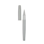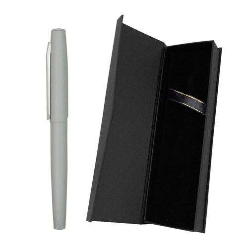 Elegante lápiz metálico enlacado con tapa. Sistema de unión clap. Estuche de cartón negro entelado. Tinta negra.
