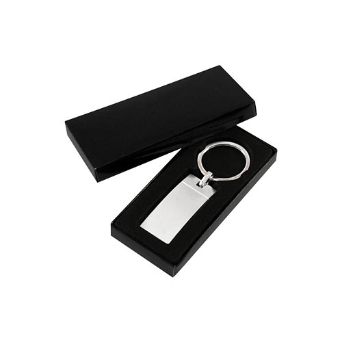Llavero Metálico satinado, modelo “Wave”. Presentación en estuche laminado negro con cuna aterciopelada.