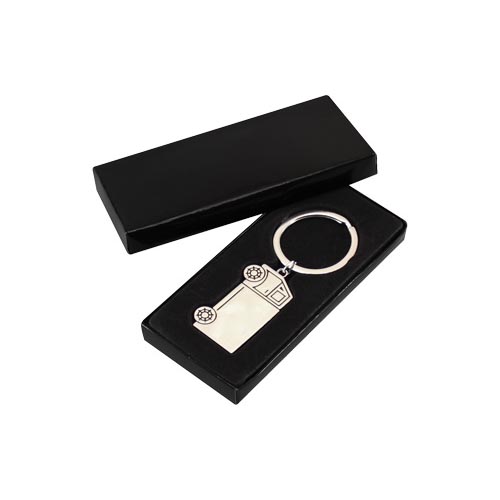 Llavero Metálico modelo “Truck”, con forma de camión. Presentación en estuche laminado negro con cuna aterciopelada.