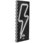 Neón Flexible + Plástico. 13 x 34 x 2,2 cm. Funciona con conexión USB o con 3 pilas AA de 1.5V (no incluidas).