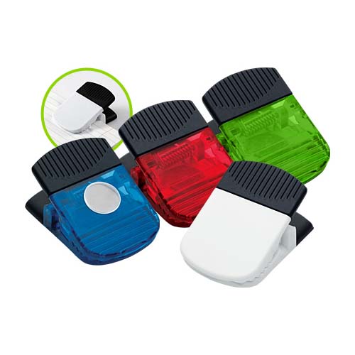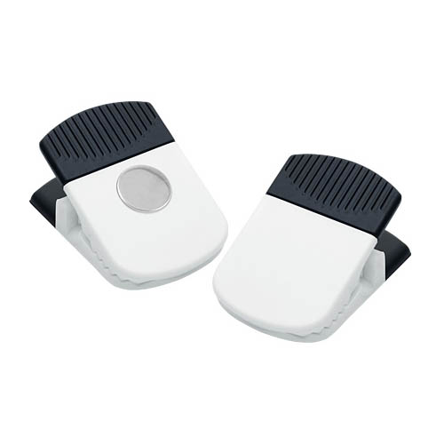 Magne-Clip Grande con base cuadrada y mango de goma negra. Amplia superficie para impresión de logo.