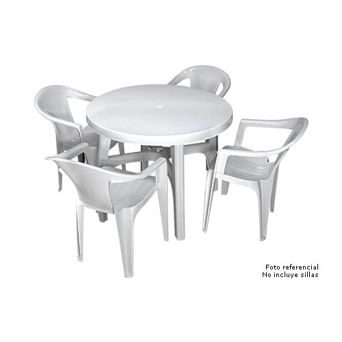 Mesa Plástica redonda modelo “Roma” de Polipropileno. Cuenta con base de 4 patas desarmables adosadas (unidas entre sí), lo que le da una resistancia y estabilidad superior a los modelos nacionales, con topes anti-deslizantes en las 4 patas. Ideal para terrazas, jardines, playa o eventos. Puede usarse tanto en interiores como en exterior. Es muy liviana, pesa sólo 5.6 kgs. y como es desarmable, ocupa poco espacio y es muy fácil de trasladar y guardar en grandes cantidades. Fácil de lavar. Producto importado de calidad superior.