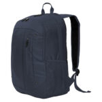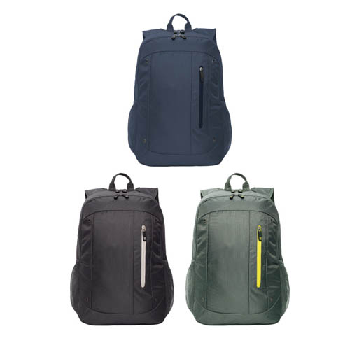 Polyester. Capacidad 25 Lt. Mochila con bolsillo interno acolchado y porta notebook de hasta 15”. En el exterior un bolsillo pequeño y otro grande con cierre que en su interior cuenta con tres compartimentos y en sus extremos dos bolsillos de red. Tiradores de goma con detalles de color. Correas acolchadas regulables.