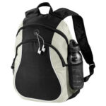 Mochila “City”, con bolsillo delantero, organizador interior y salida para auriculares.