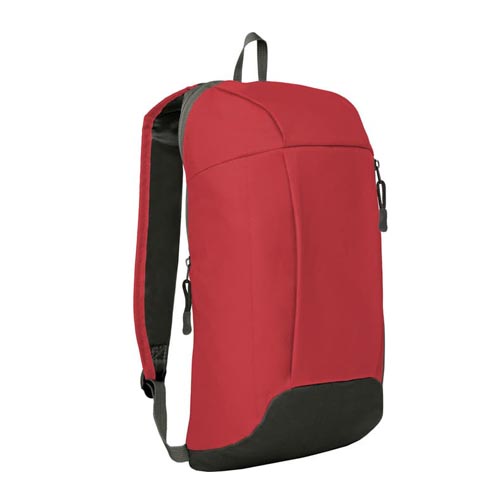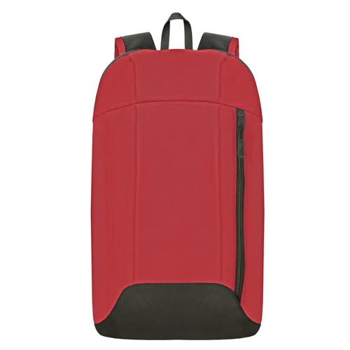 Capacidad 10 litros. Polyester. Mochila con un compartimento principal y bolsillo frontal con cierre. Correas ajustables con hebillas de plástico.