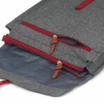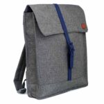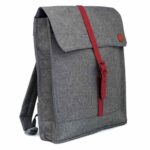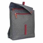 Práctica mochila urbana compacta con detalle de cierre y correa de color.
