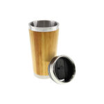 Mug de madera de Bamboo, interior de Acero Inoxidable, tapa con dosificador.