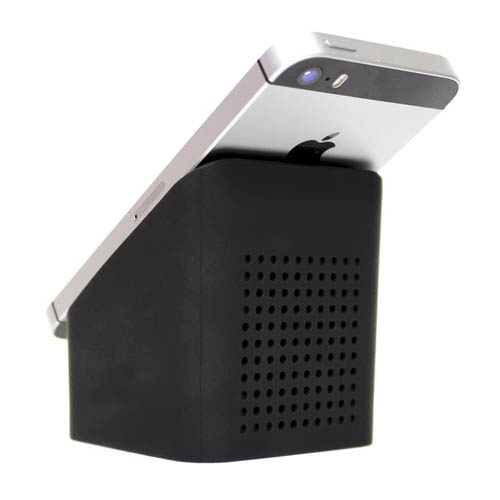 Plástico. Parlante bluetooth. Botón de encendido y apagado en uno de los costados, volumen y mini adaptador USB. Pequeñas ventosas que permite adherirse a distintas superficies o para sujetar el celular. Alcance 10 metros. Frente desmontable para facilitar la personalización.