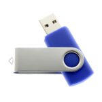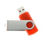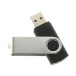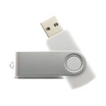 Pendrive, goma(PVC), tapa metálica giratoria, empaque plástico individual.