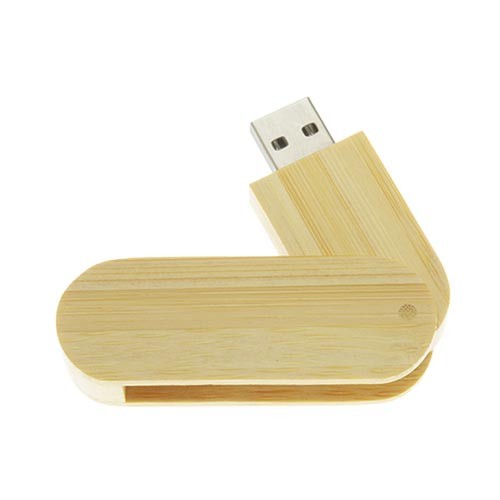 Pendrive madera, tapa giratoria, empaque plástico individual. Capacidad de 8GB.