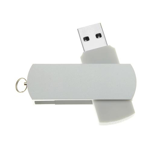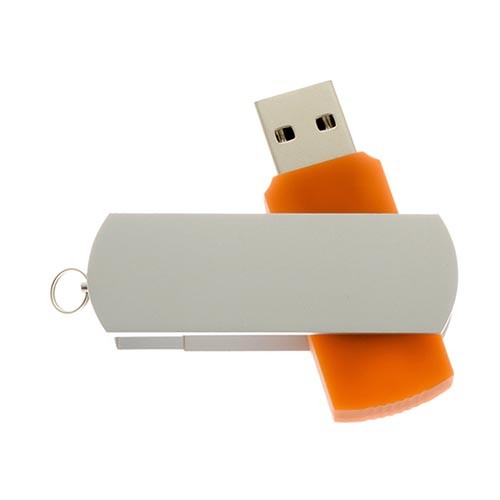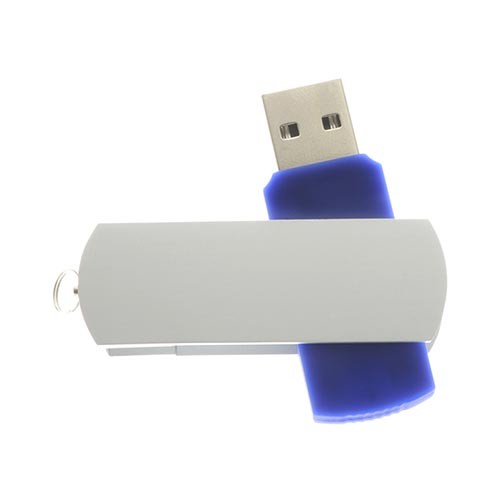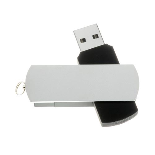 Pendrive plástico, tapa metálica giratoria, empaque plástico individual.