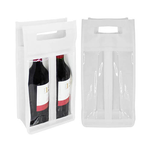 Porta-Botellas de vino, para 2 unidades, en tela no tejida (TNT) de 80g/m2, con ventanas frontales de PVC clear.