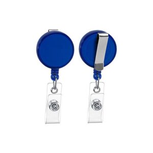 Porta-Credencial Grande de PVC Clear, incluye cordón azul para colgar.